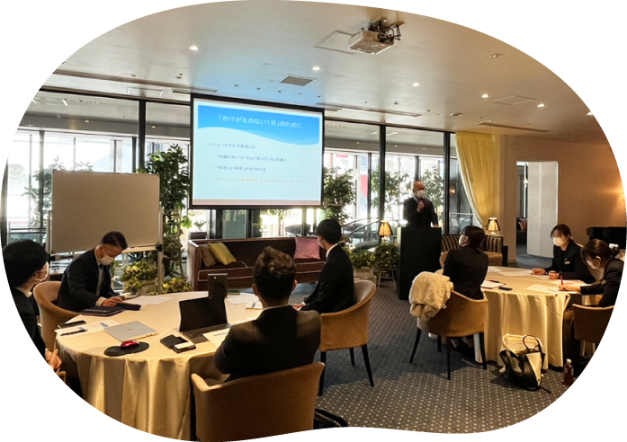 地域での雇用貢献 研修制度の再構築階層ごとに適切なタイミングで必要な研修を設け、社会人や管理者としての人格形成、社内の人材育成、更なる組織醸成を図ります。 進捗状況……△